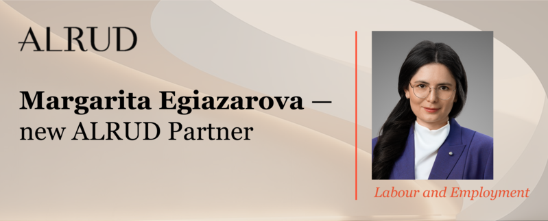 ALRUD Law Firm is pleased to announce the strengthening of its labour practice team with the appointment of Margarita Egiazarova as Partner, effective September 1, 2024. With this promotion, the total number of equity partners at ALRUD has now reached 15.